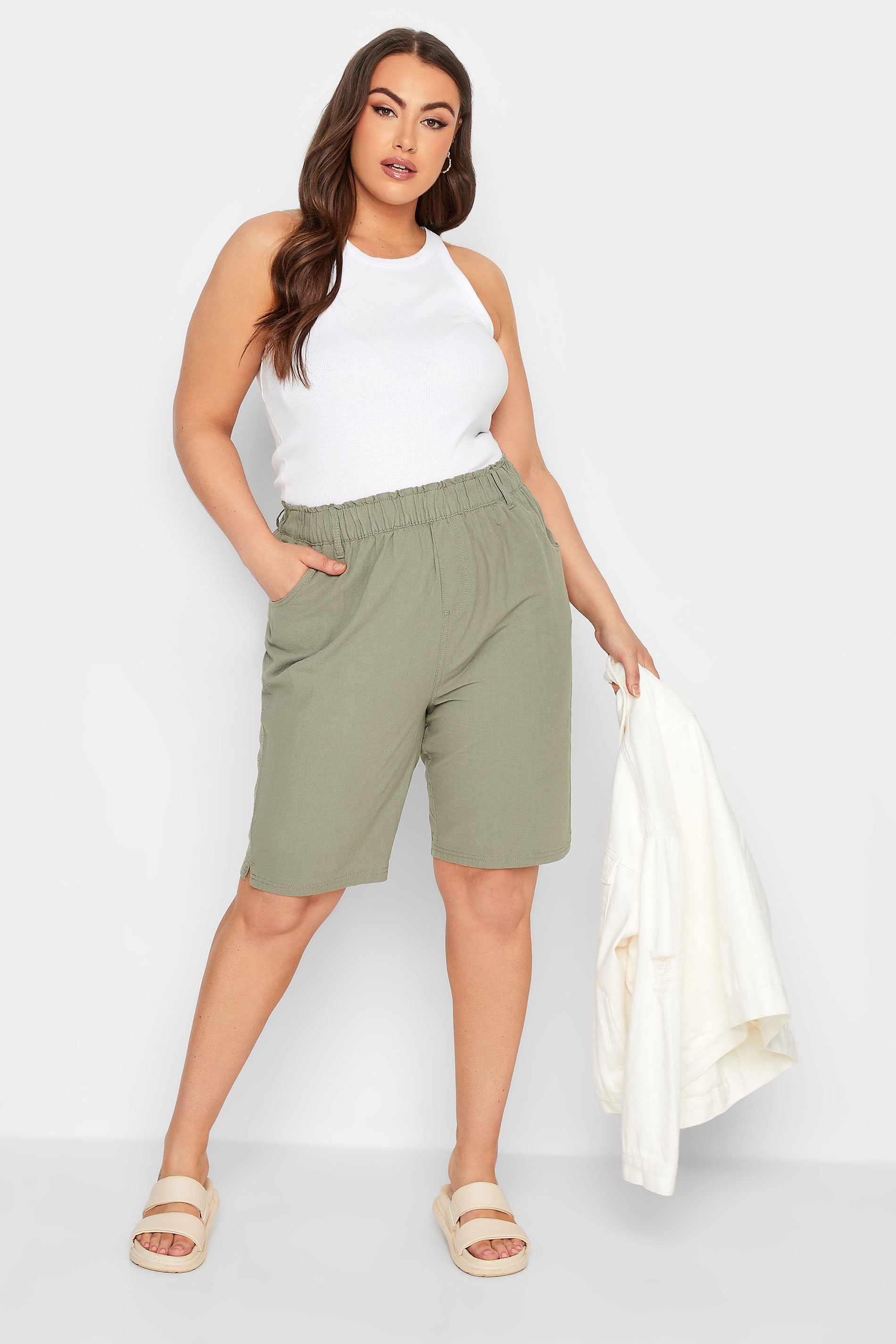 YOURS Curve Khaki Green Cotton Shorts 257302