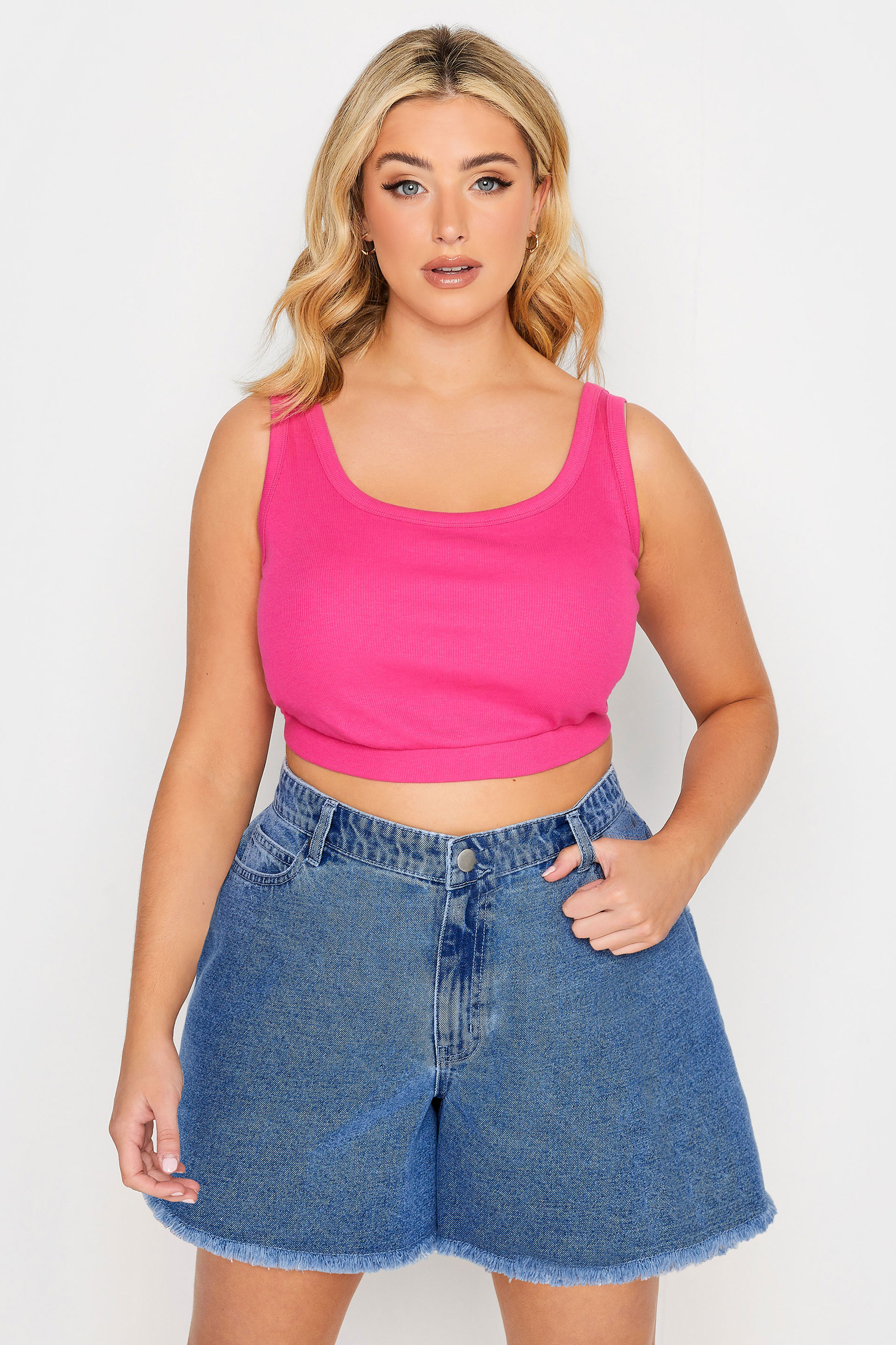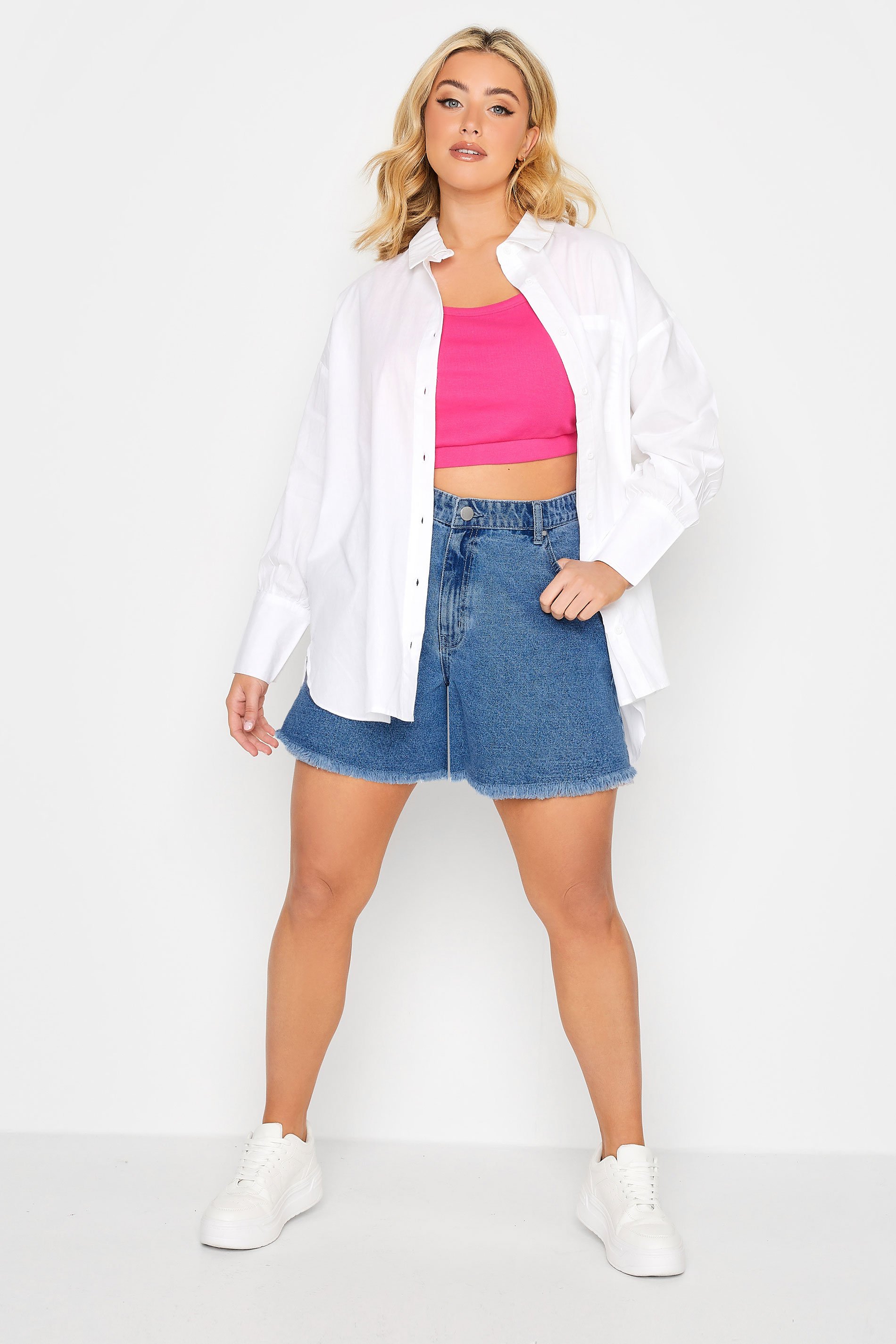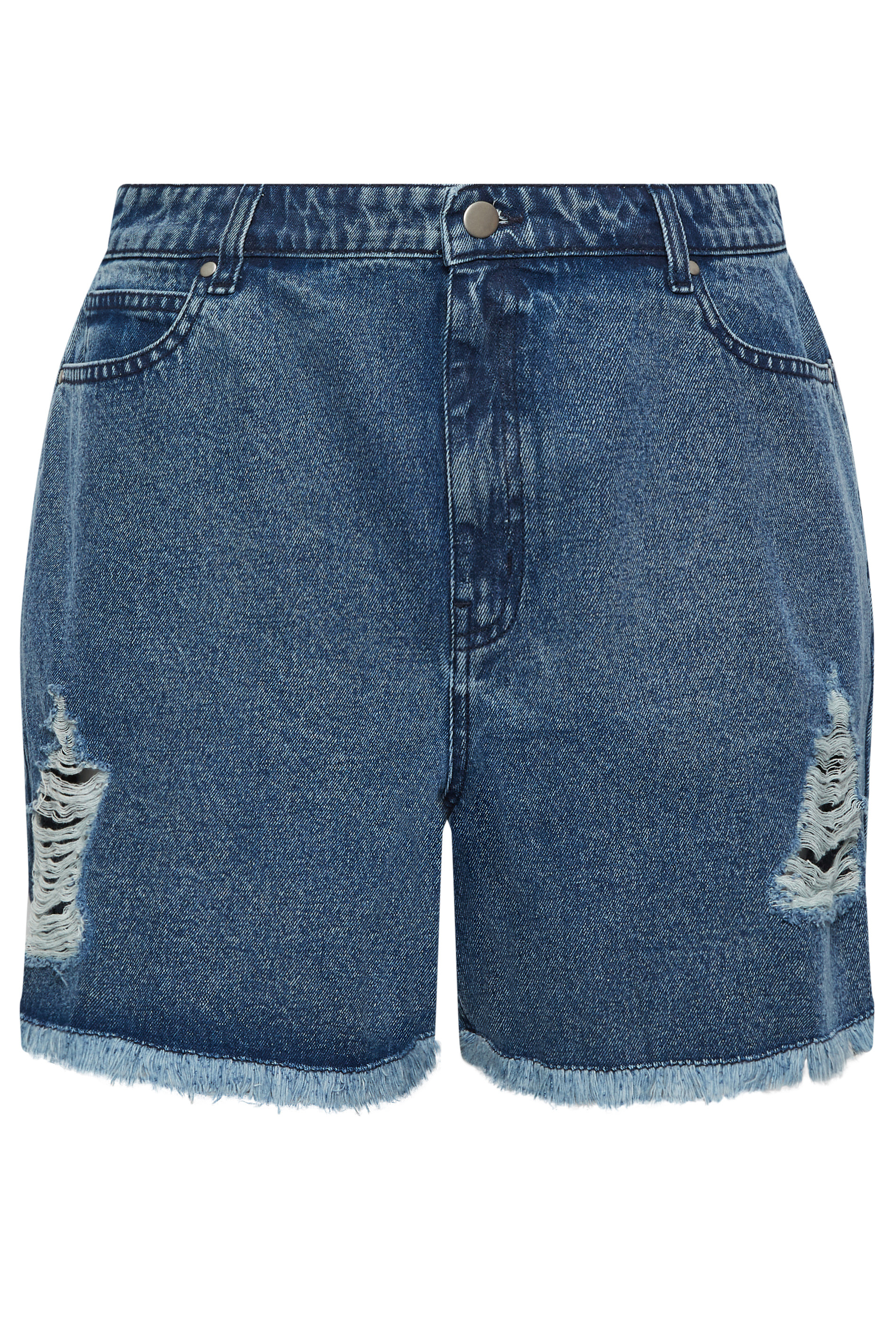 Refresh your summer denim collection with these new-in shorts. In a flattering floaty fit, these plus size shorts feature belt loops, a button and zip fastening, frayed hems, and five functional pockets. Style with a t-shirt and sandals for a look you can rely on this season.