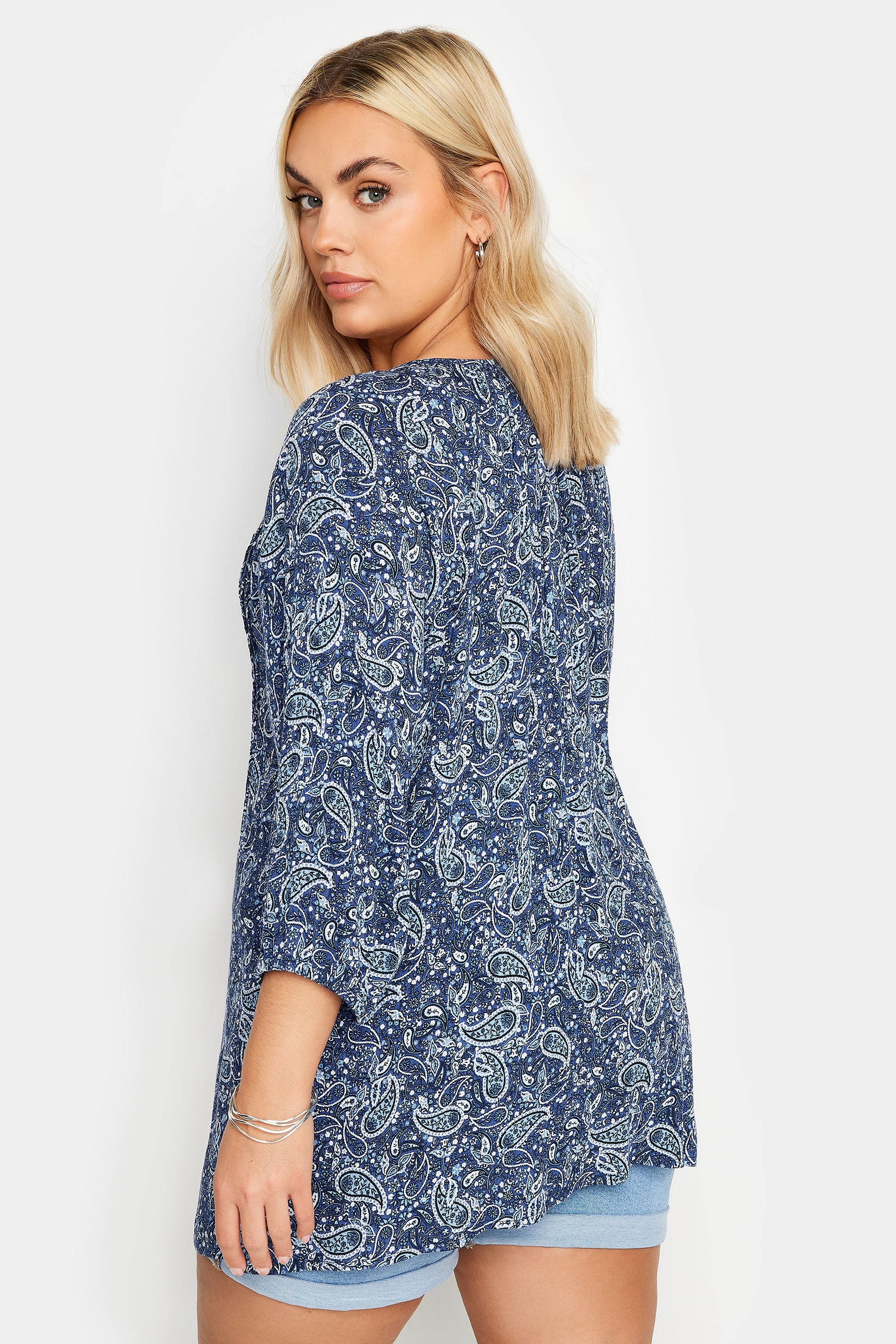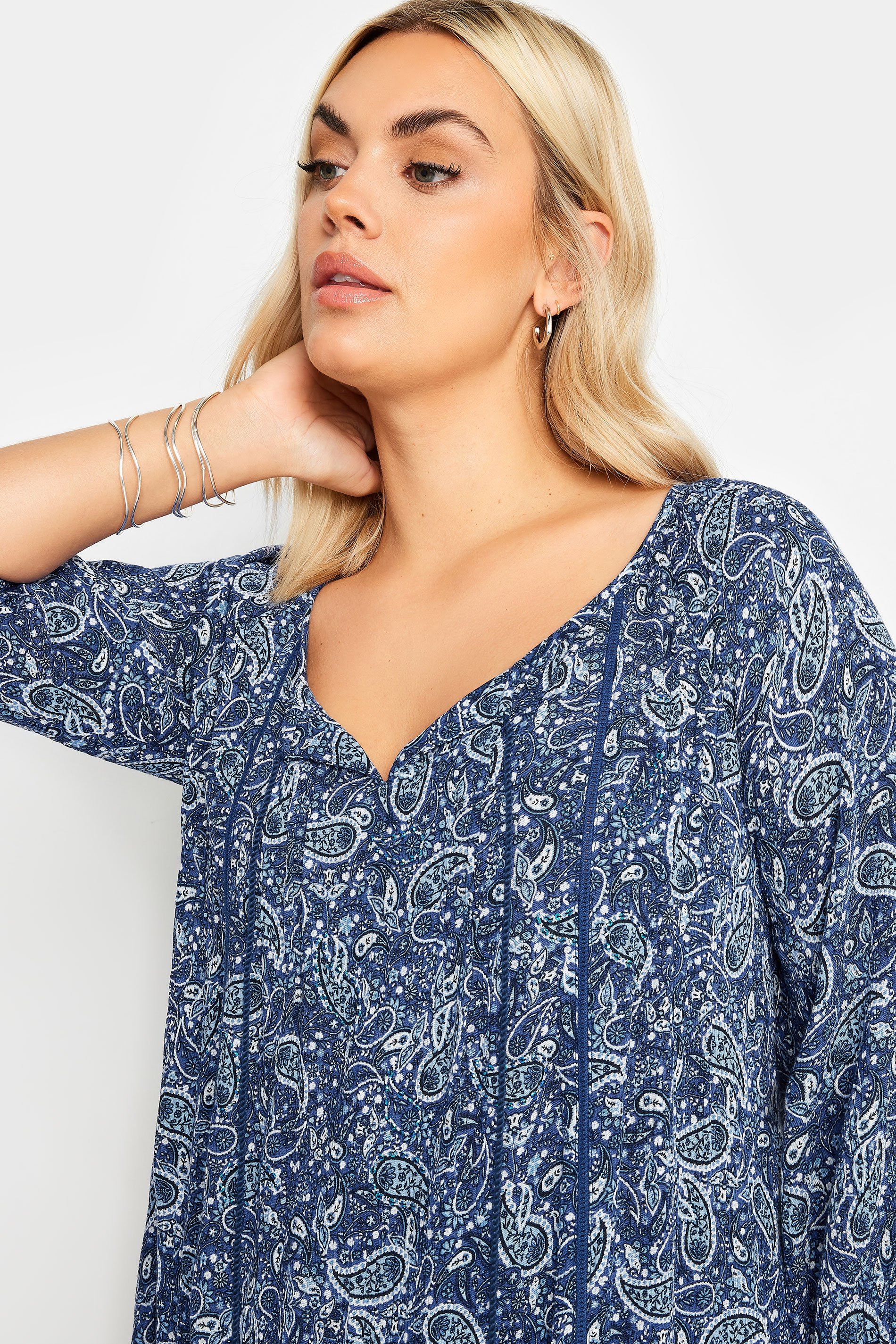 YOURS Curve Navy Blue Paisley Print Tie Neck Blouse 251800
