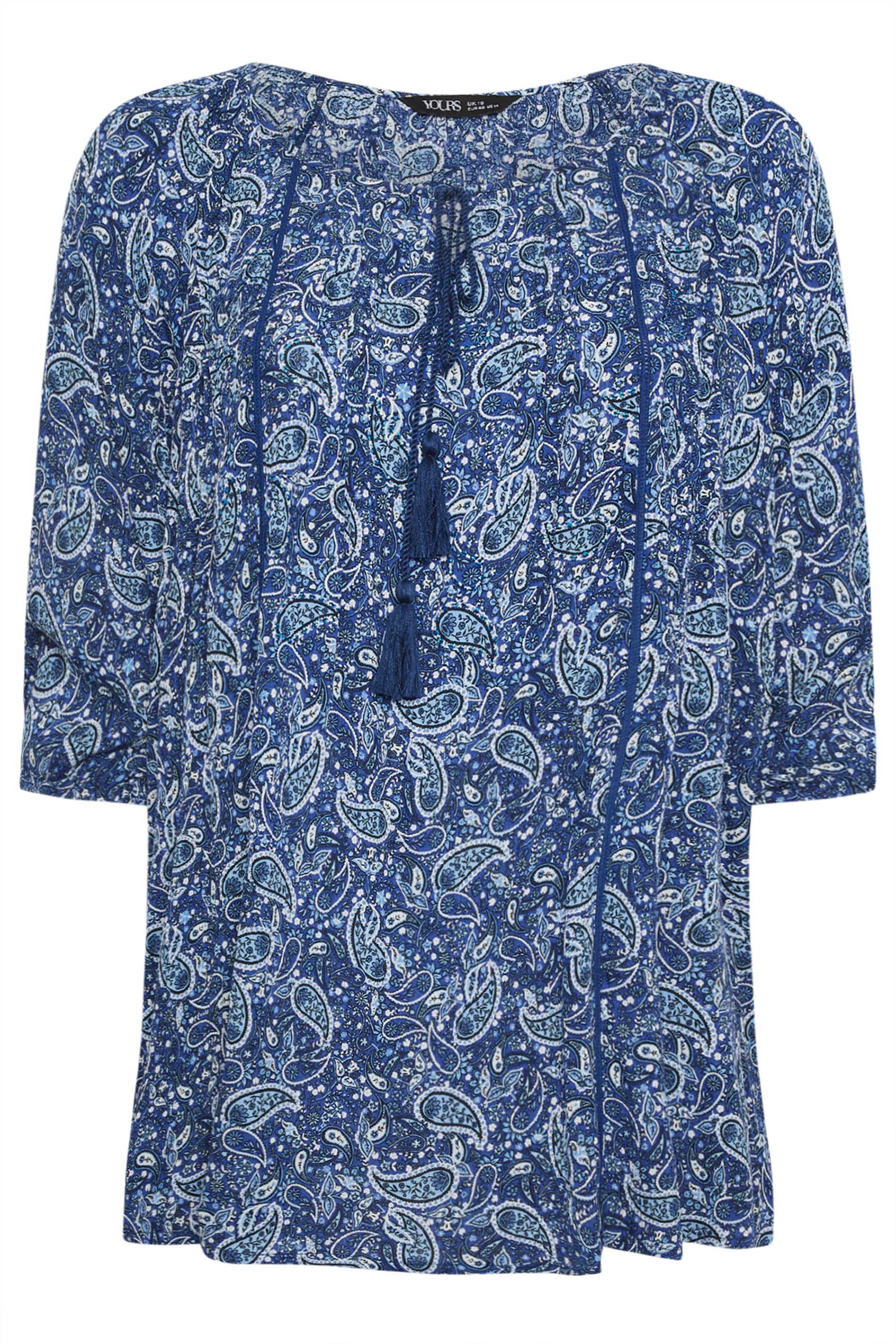 • YOURS Curve Navy Blue Paisley Print Tie Neck Blouse
