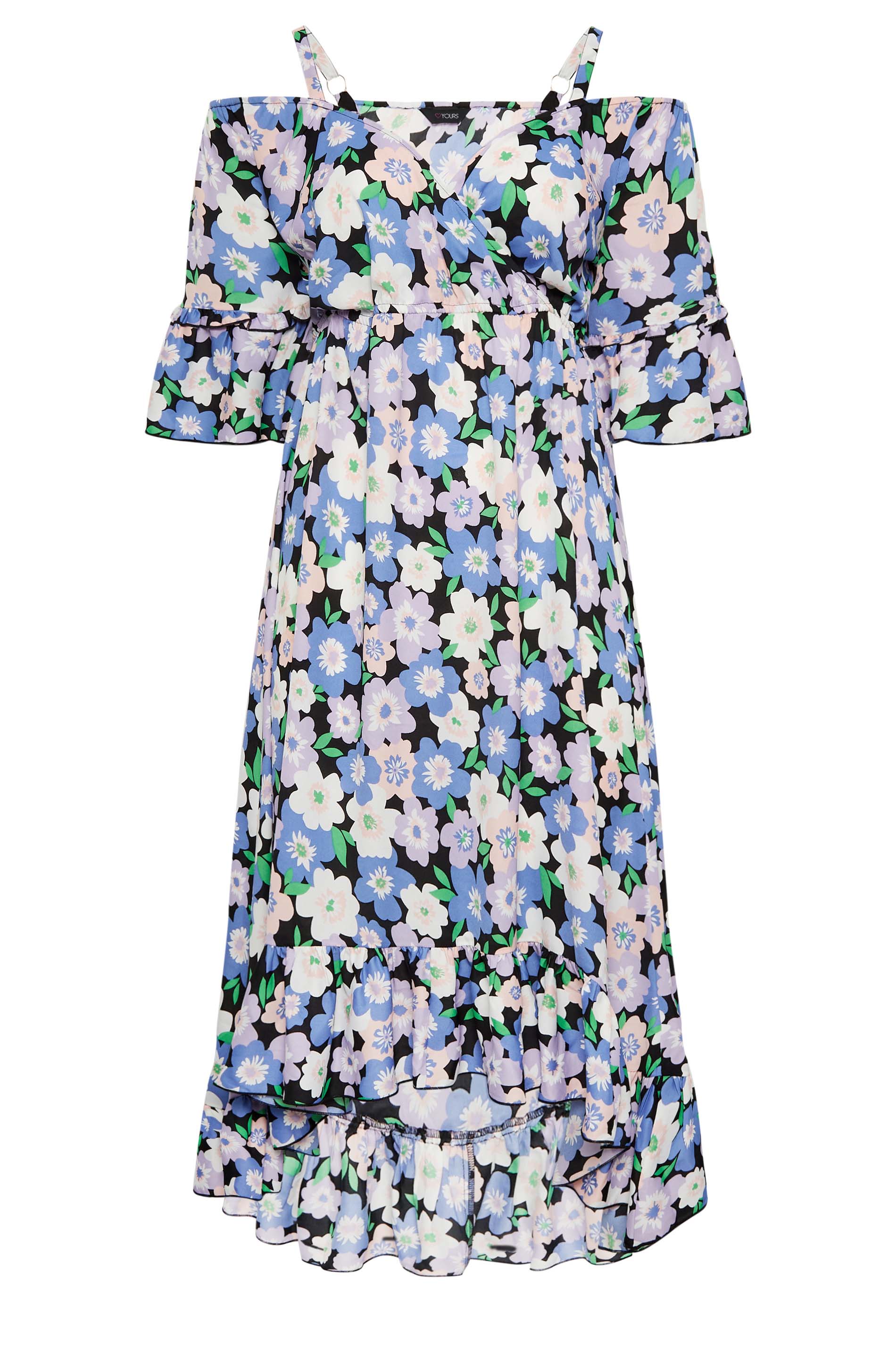 A pretty print to take on your next holiday. Made from a comfortable woven fabric, this plus size dress features a cold shoulder design with a wrap v-neckline and 3/4 length sleeves with frill detail, complete at a midaxi length. Pair with sandals or heels to finish the look.