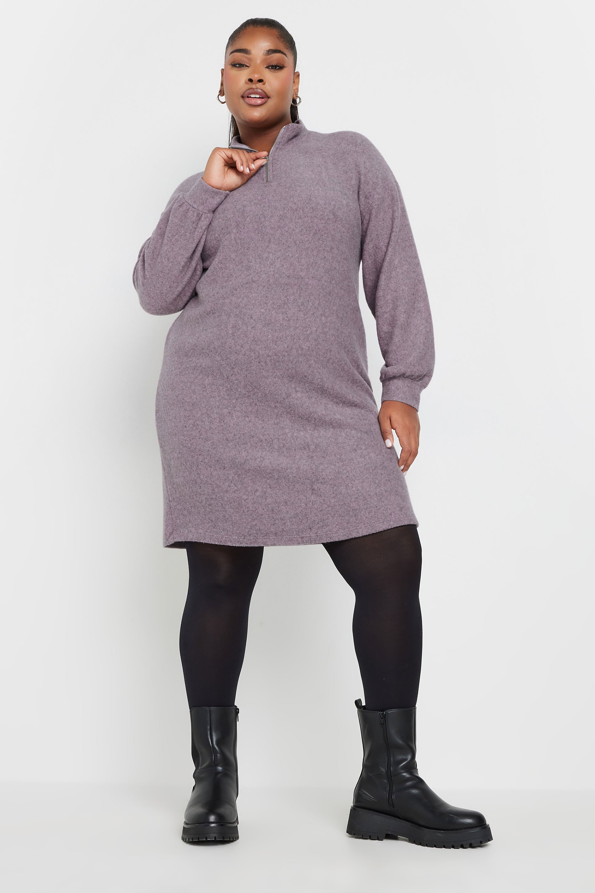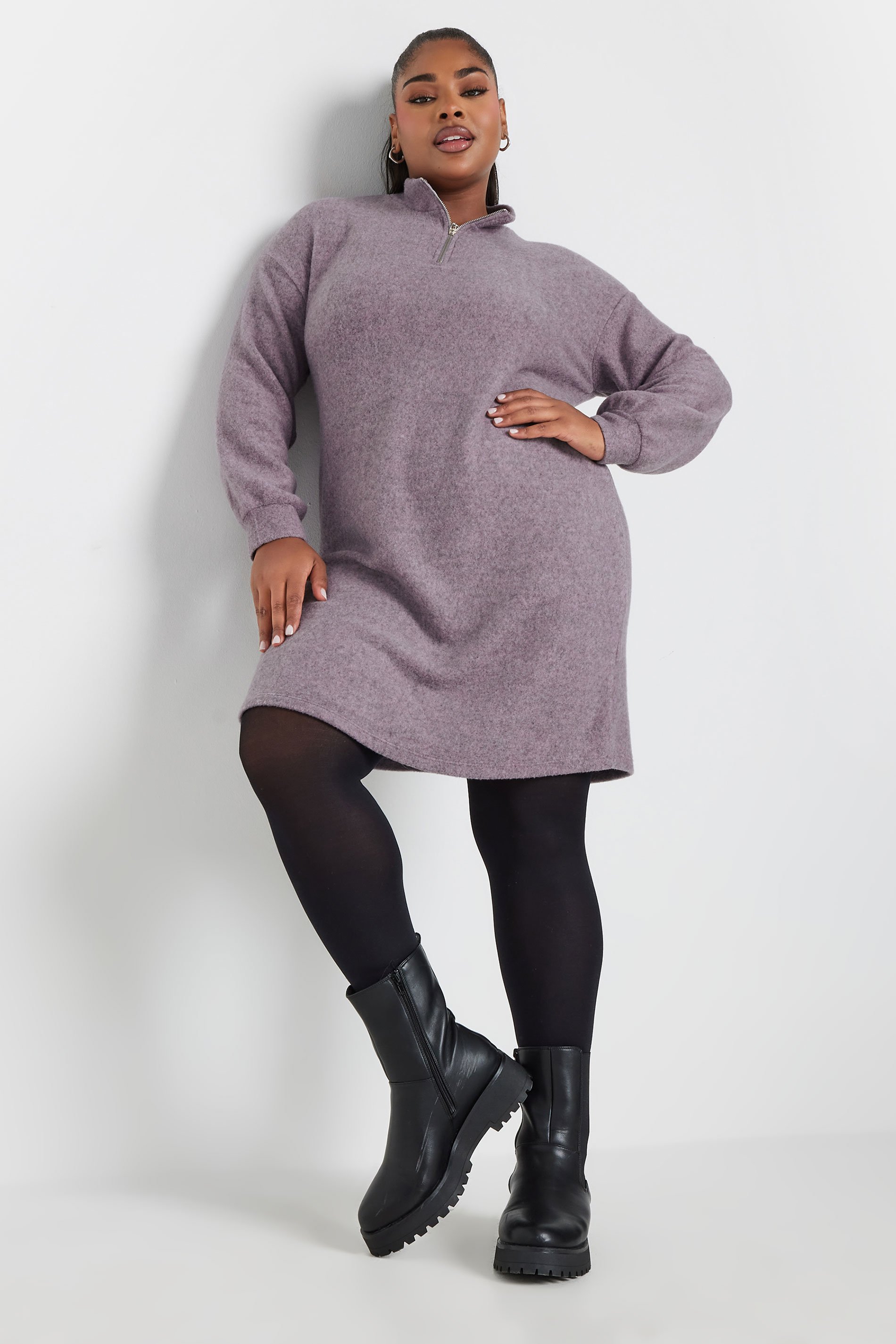 This new-in soft touch jumper dress is perfect for your wardrobe. Made from a super soft jersey fabric, it features a midi length, long sleeves, and a high zip neckline. Simply style with tights and boots for a perfect winter ready look.