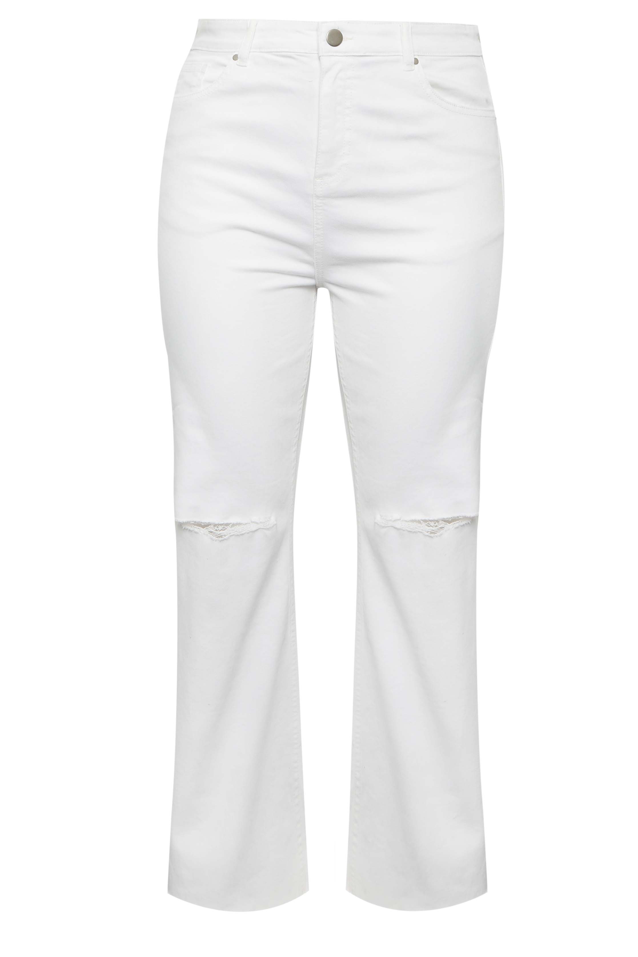 Yours Curve White Ripped Wide Leg Jeans