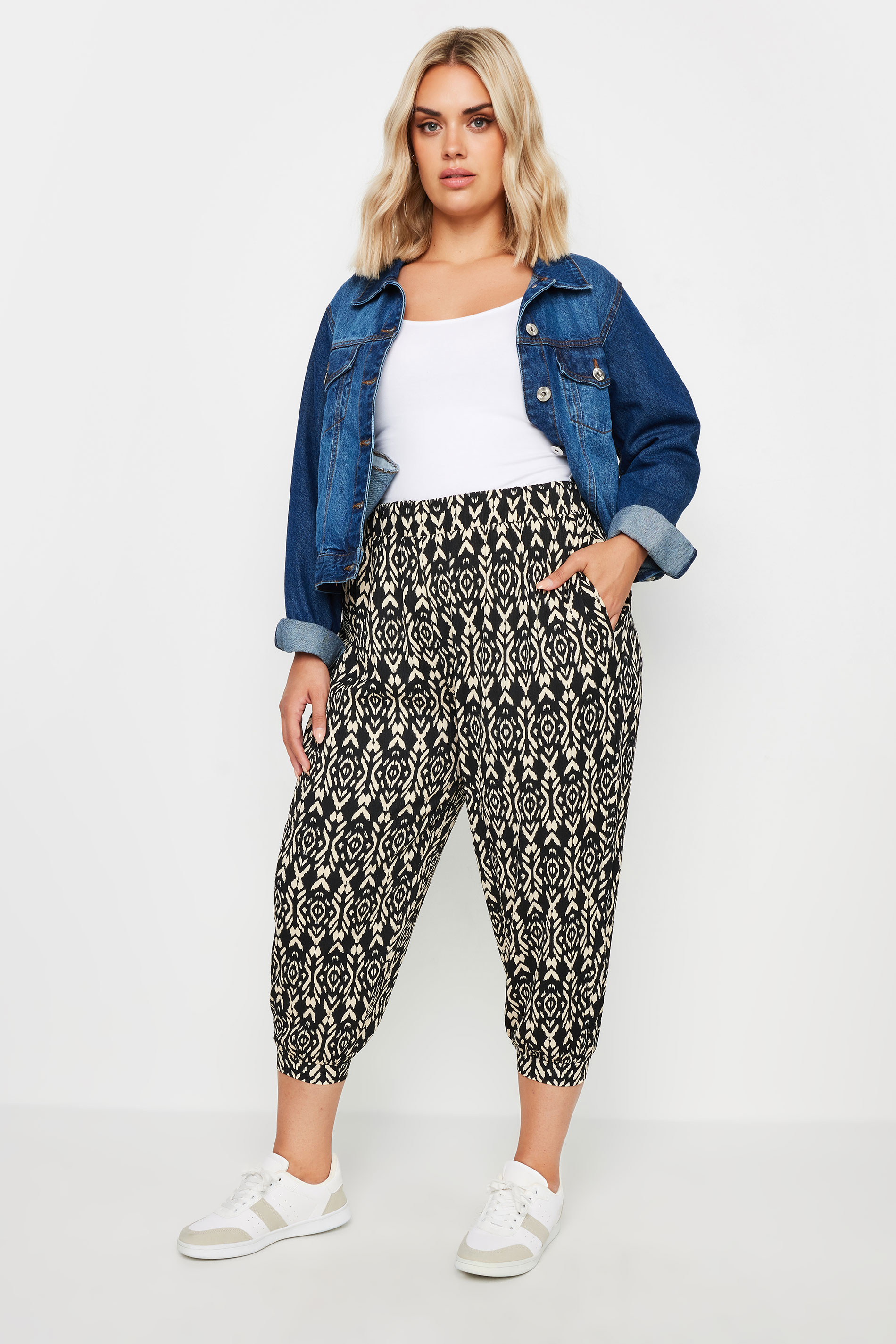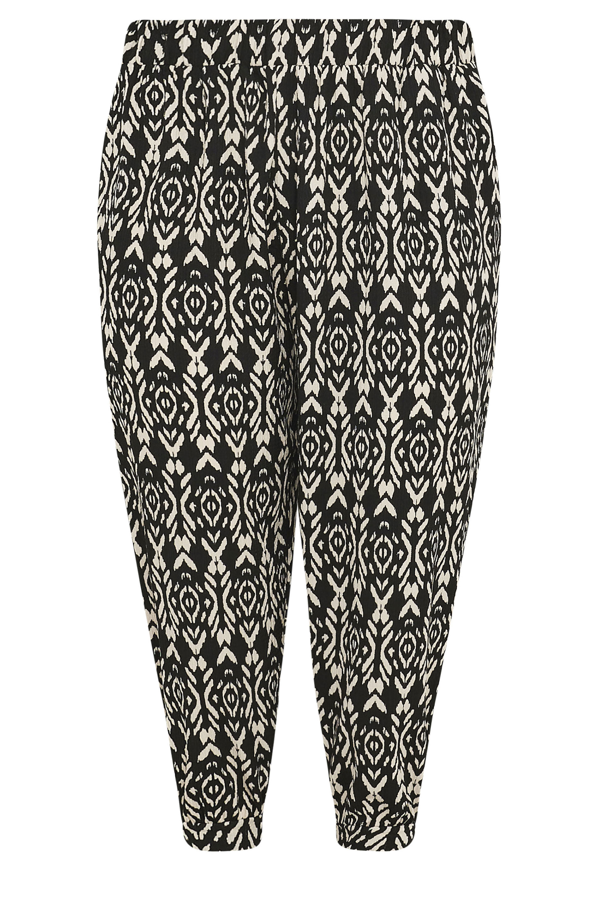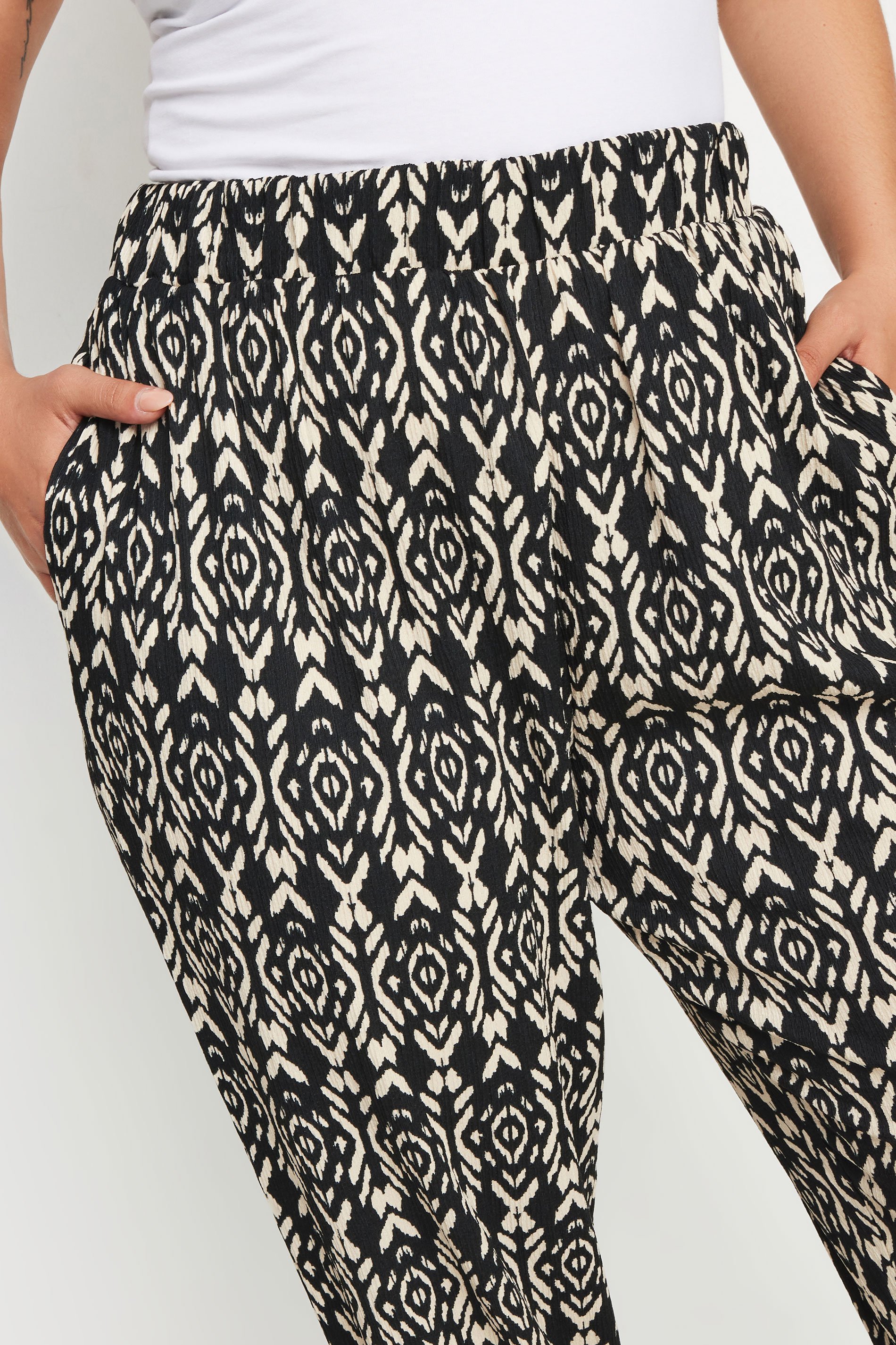 • YOURS Curve Black Ikat Print Textured Cropped Harem Trousers