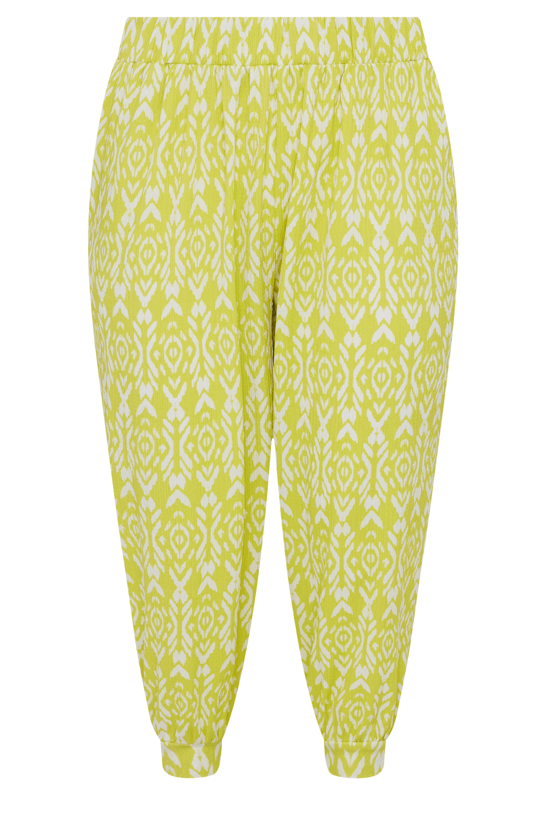 • YOURS Curve Yellow Ikat Print Textured Cropped Harem Trousers
