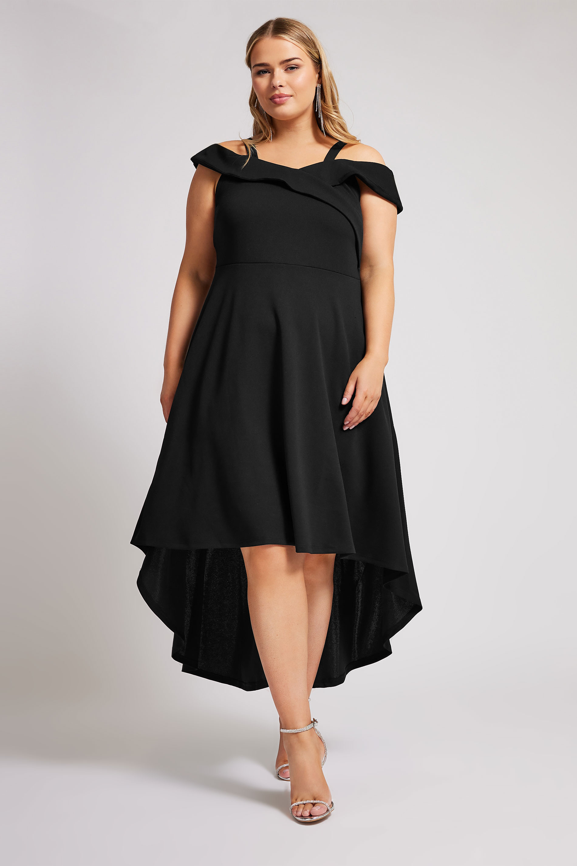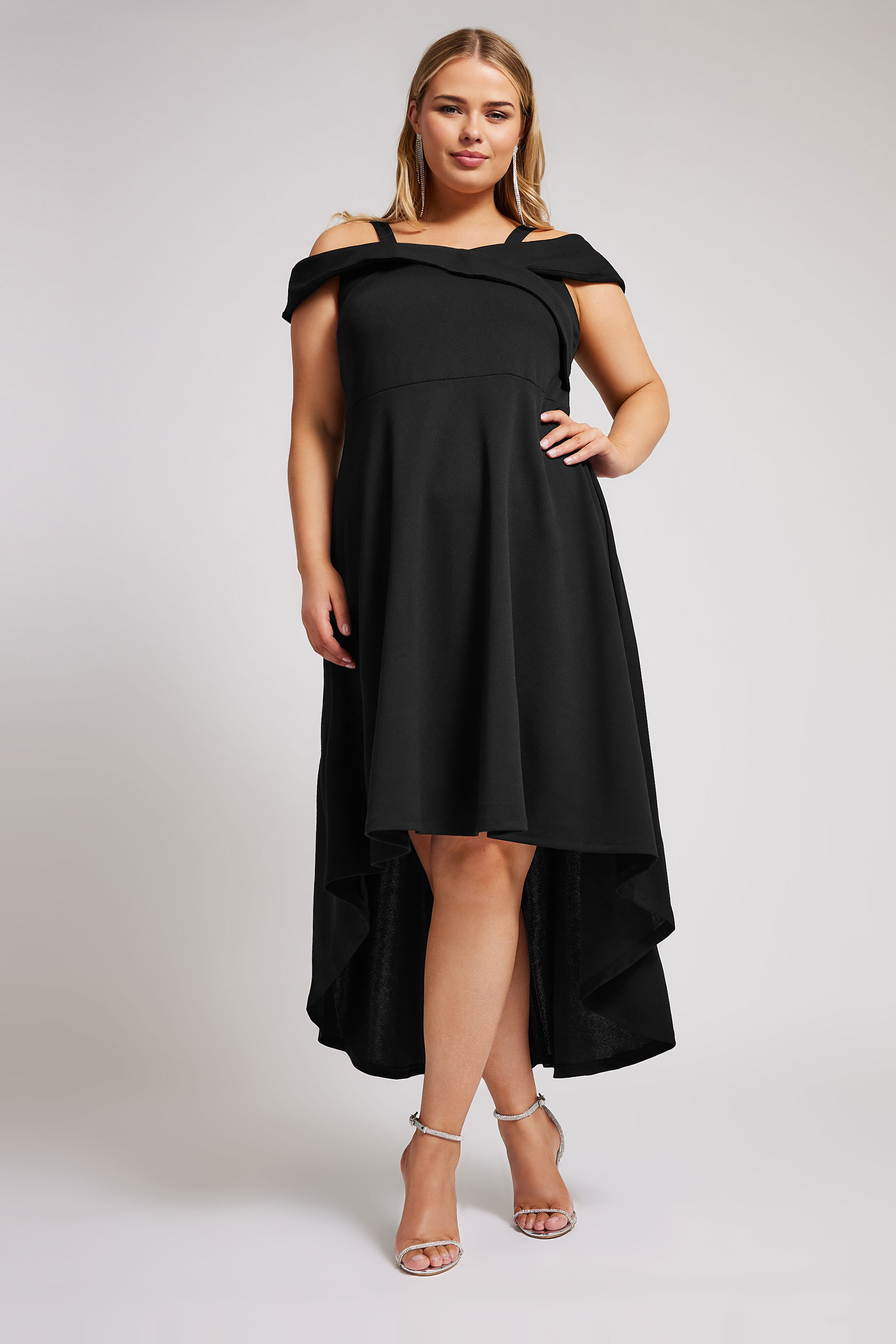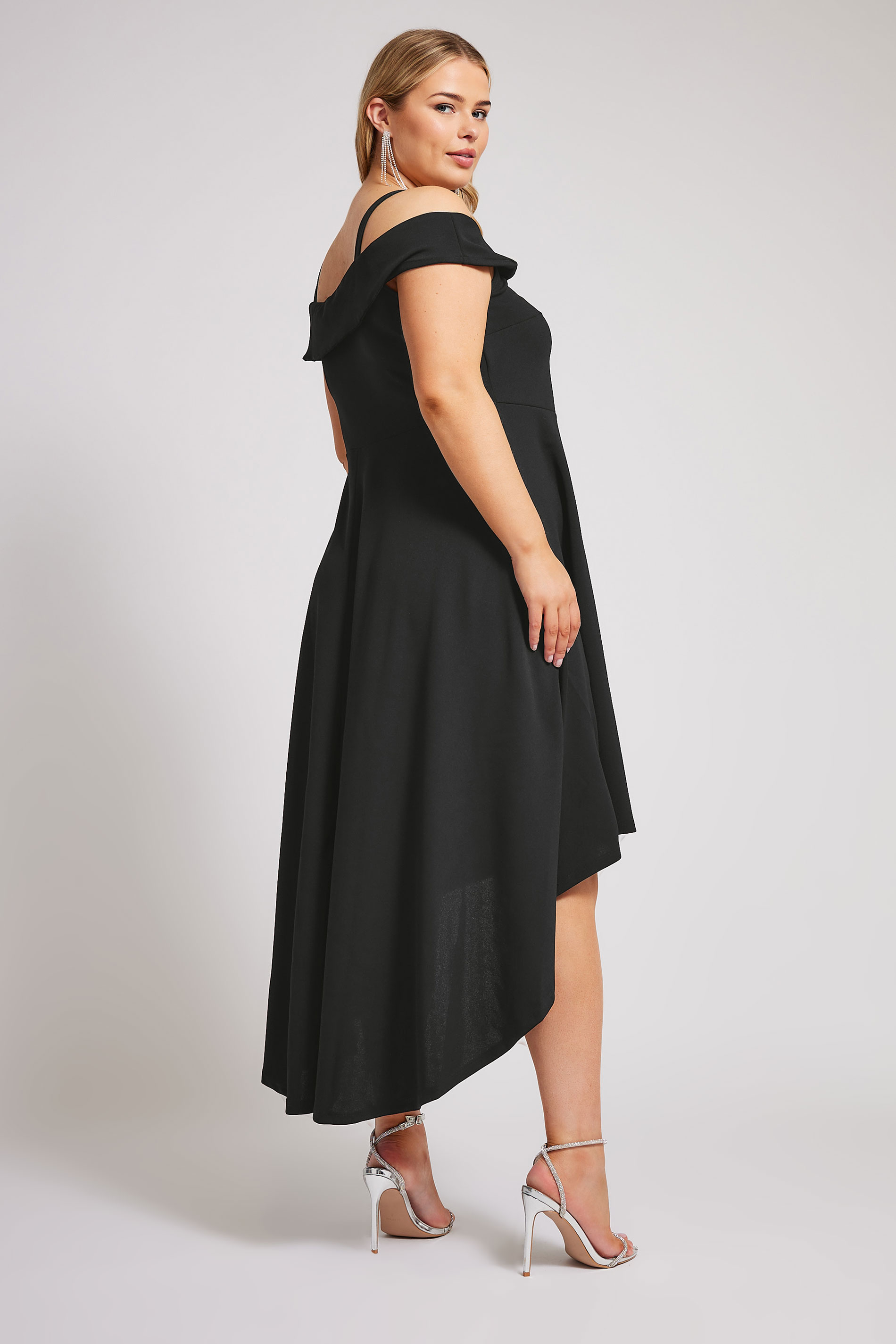 Get ready for your next special occasion with this must-have midi dress. Made from a comfortable jersey fabric, it features a bardot neckline and dipped hemline. Style with heels and a clutch bag for a look that is perfect for bridesmaids or attending guests.