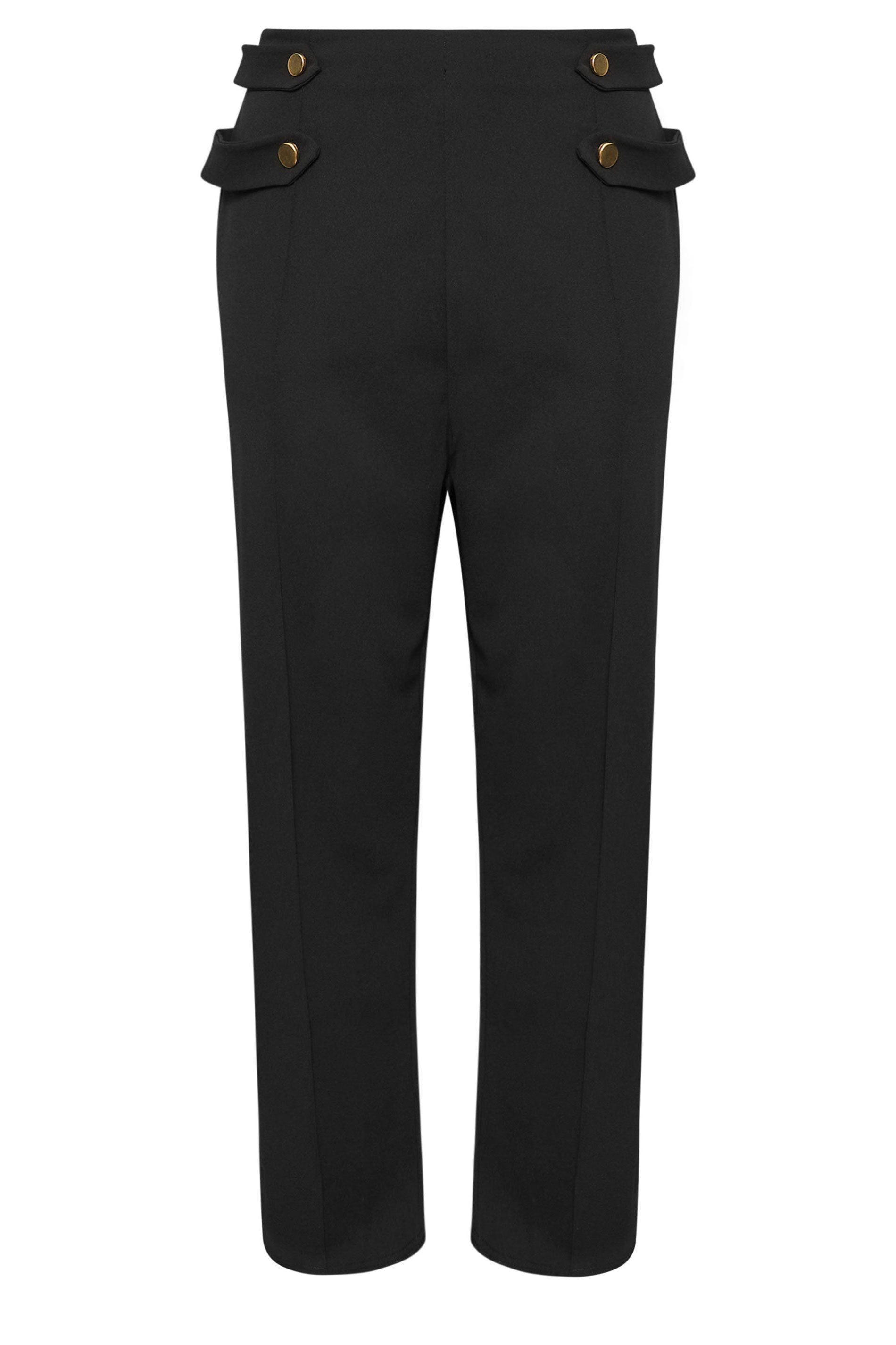These sophisticated trousers are a must-have for your smart casual collection! Made from a comfortable woven fabric, these trousers feature gold-tone buttons, a seam front design and a straight leg fit. Style with a shirt or bodysuit to effortlessly dress this look up or down.