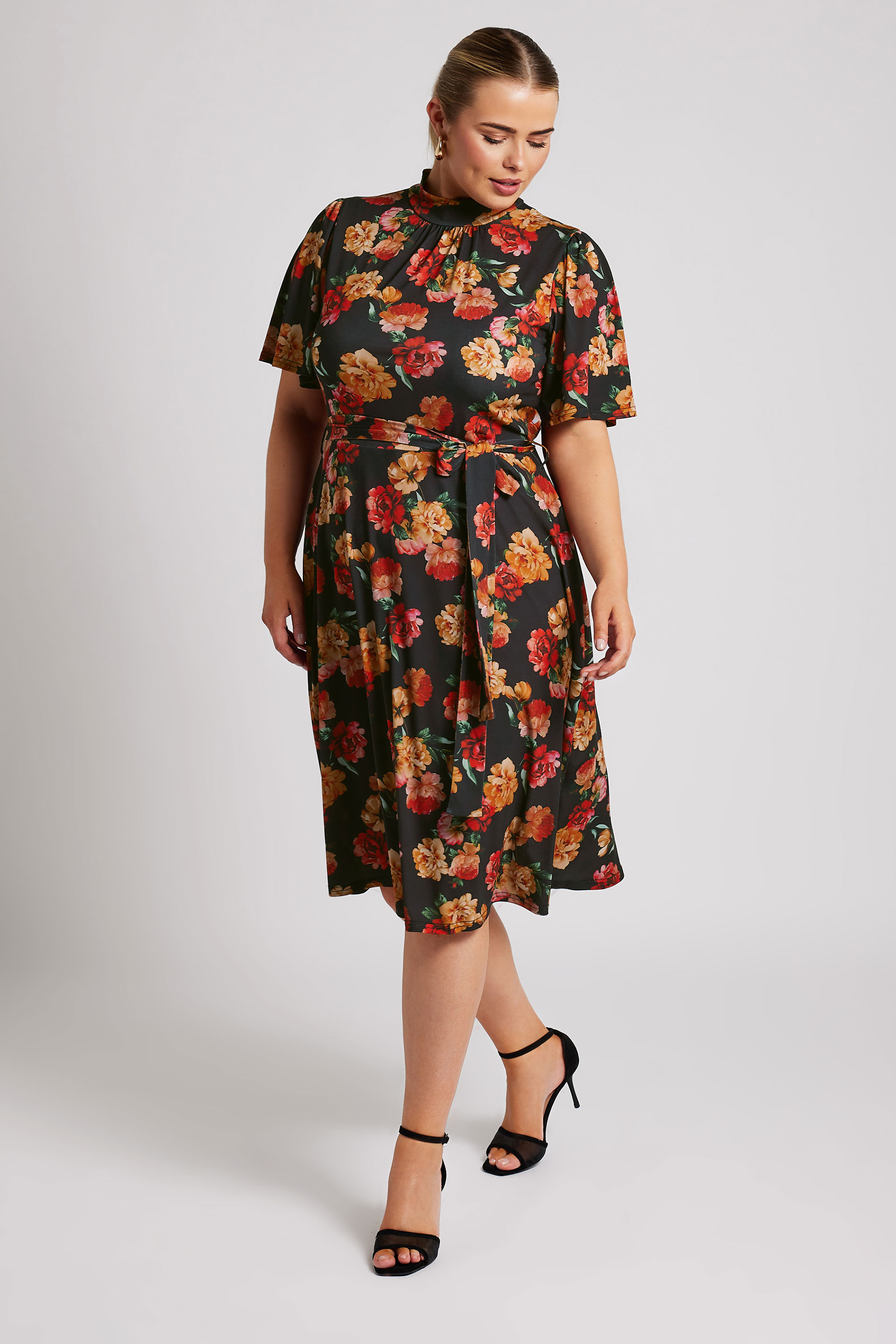 Add fresh florals to your occasionwear collection! Made from a comfortable jersey fabric, this dress features a floral print, skater style, high neck design, tie belt detail and short sleeves. Style with heels and your favourite clutch for a stunning look perfect for your next special occasion.