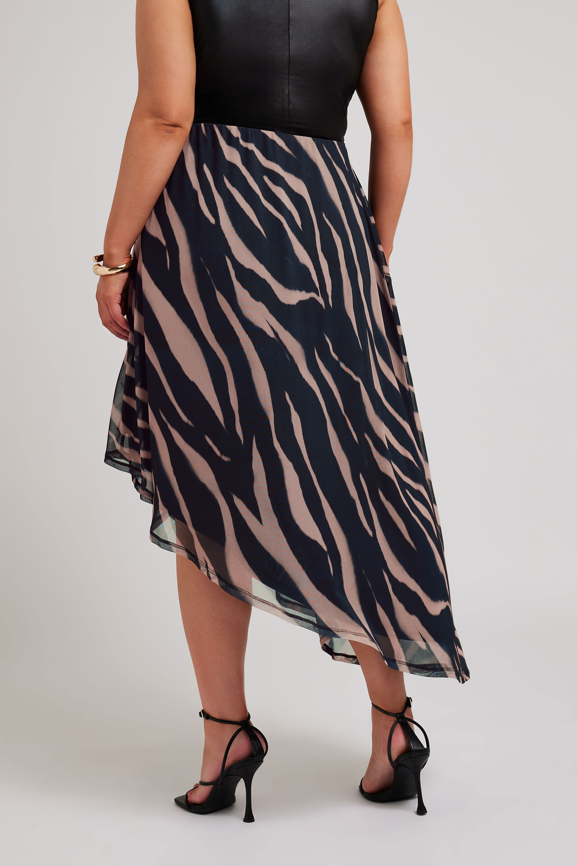 YOURS LONDON Curve Black Zebra Print Asymmetric Mesh Skirt