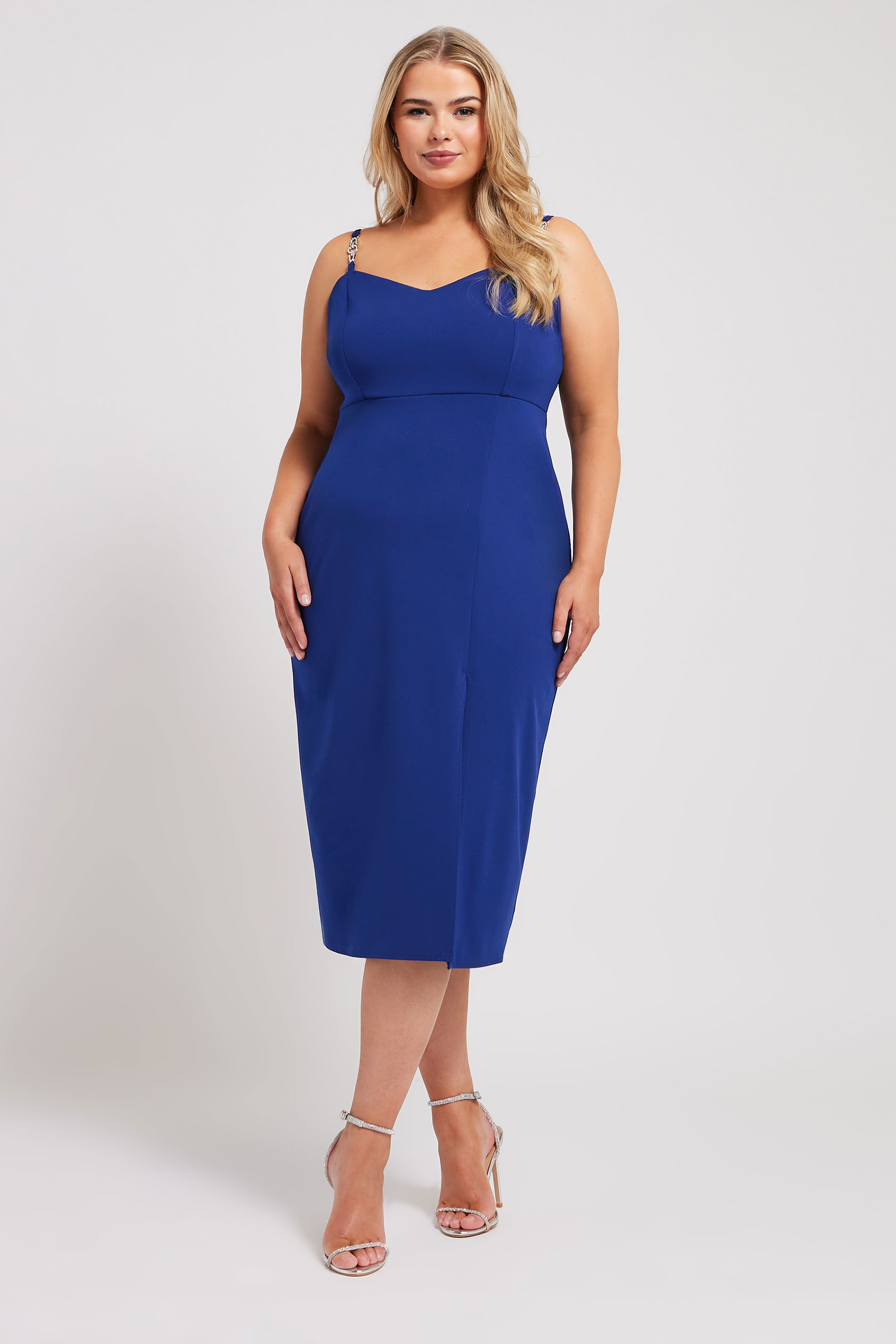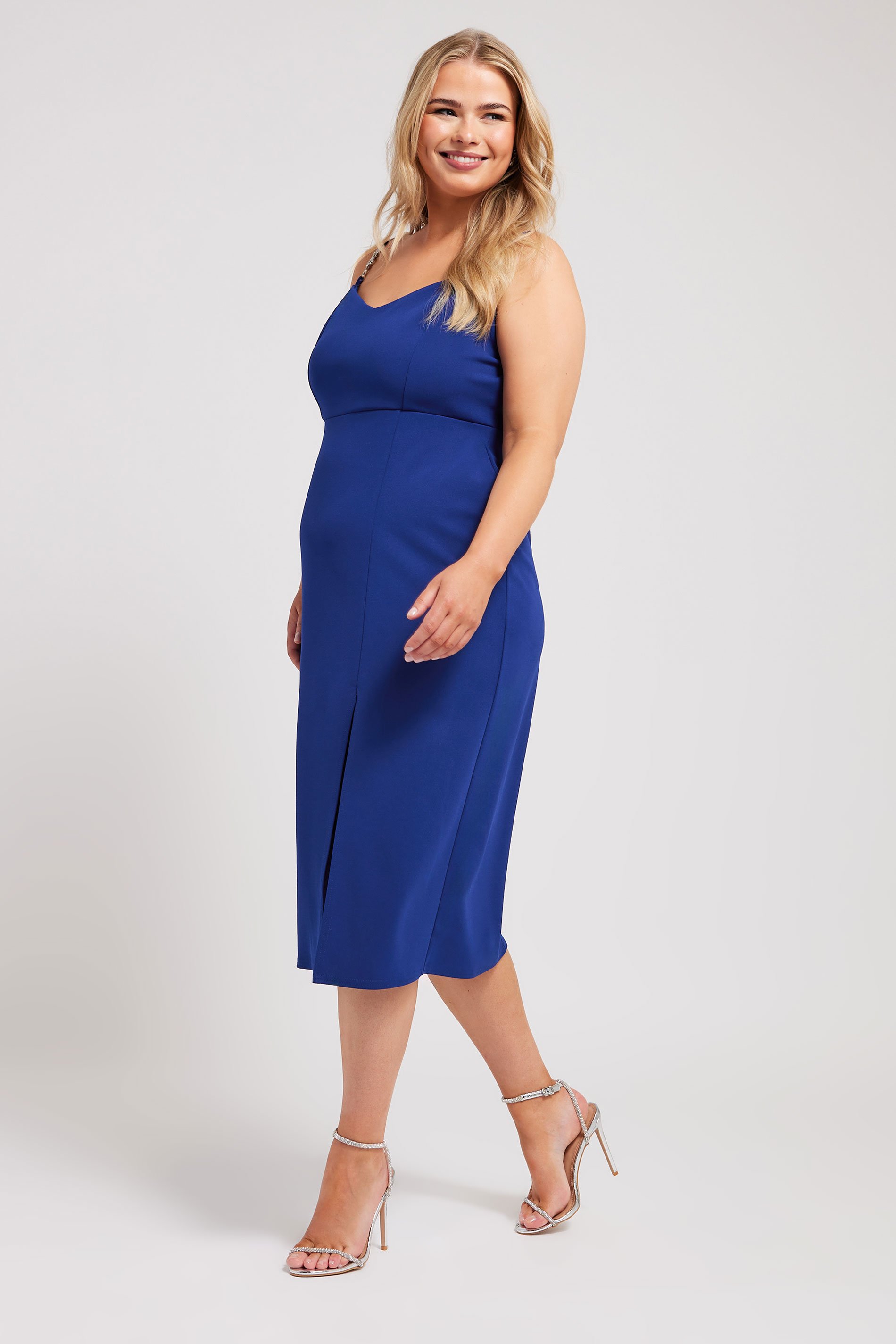 Be the best dressed guest this season with this new-in midi dress! Made from a comfortable woven fabric, this dress features silver-tone diamante straps, a side spit design, a sleeveless look and sits at a midi length. Style with heels and silver-tone jewellery for the perfect finishing touch.