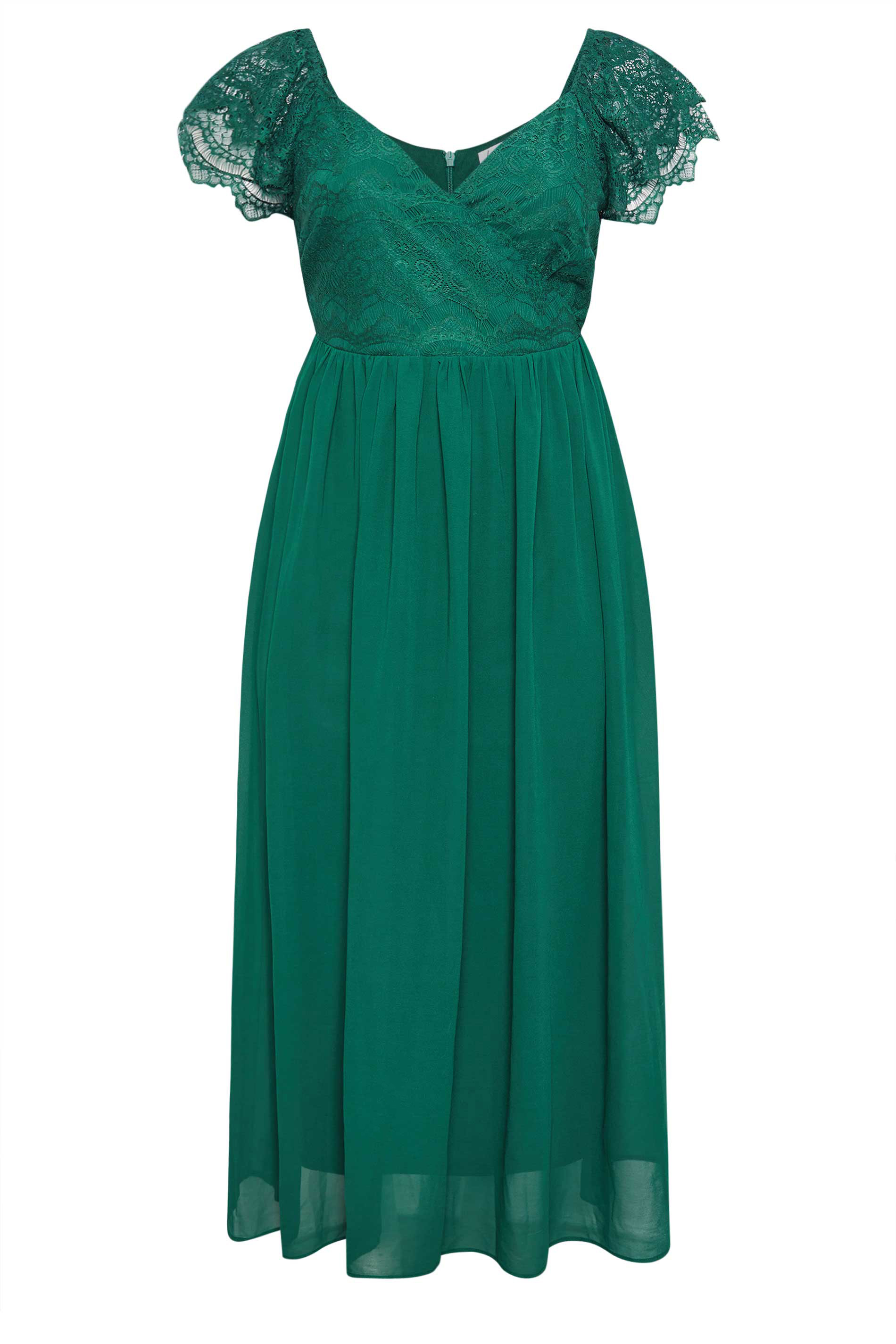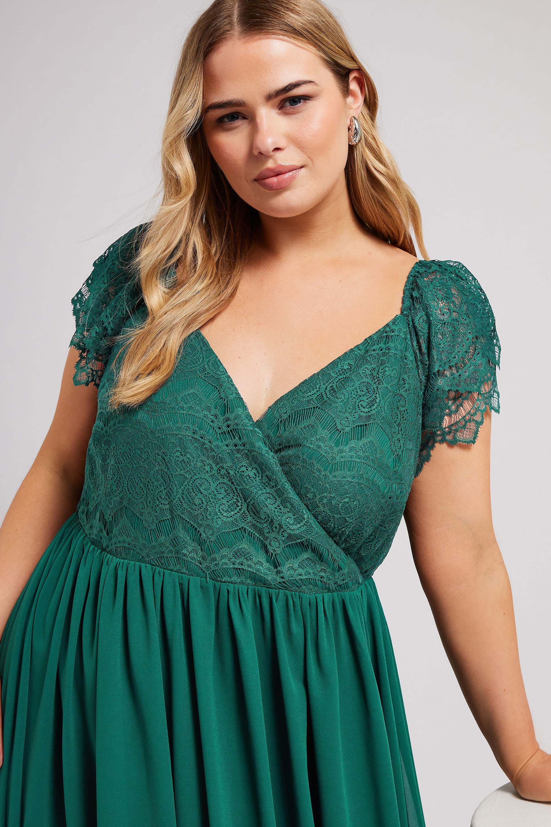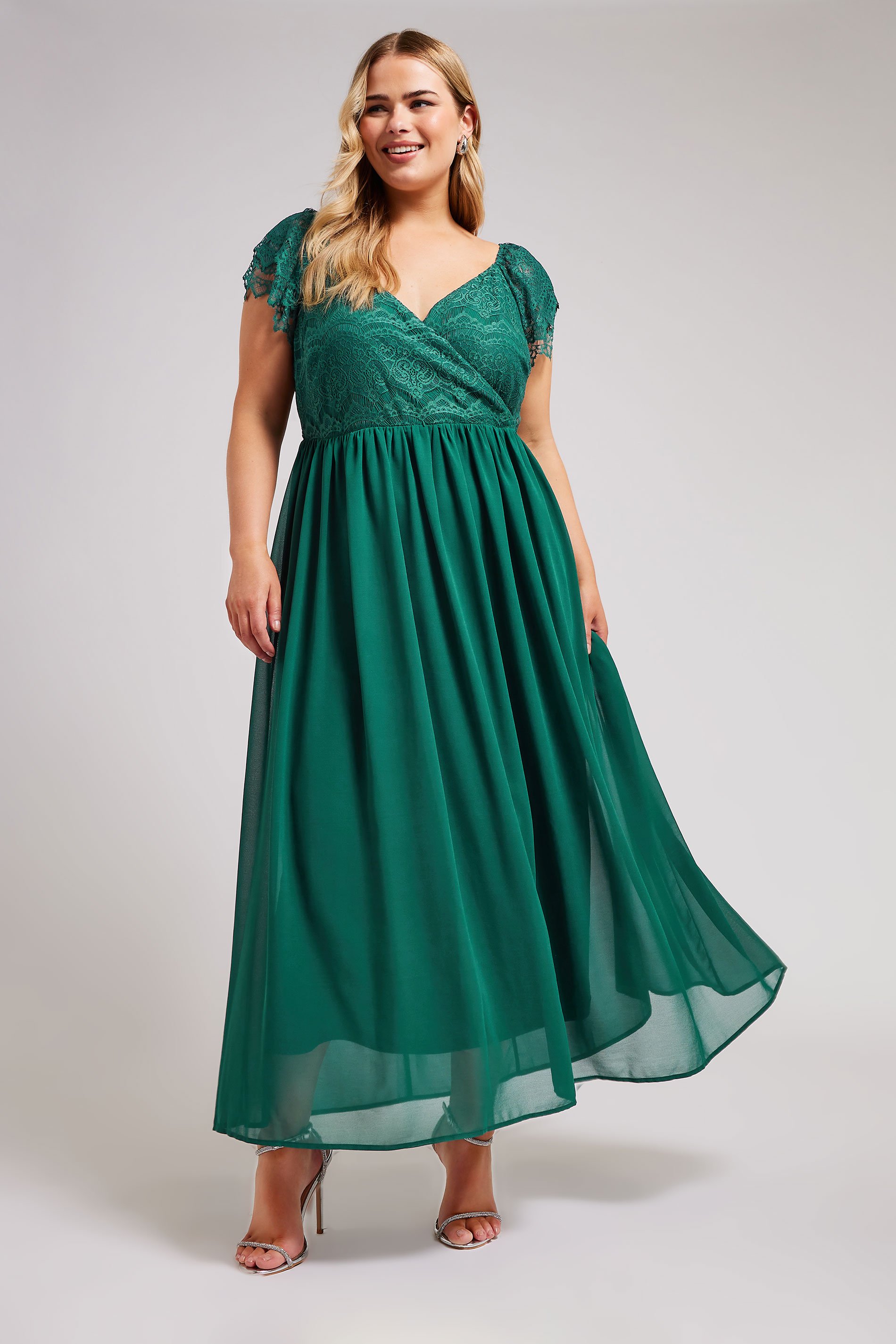 YOURS LONDON Curve Green Lace Wrap Maxi Dress 250806