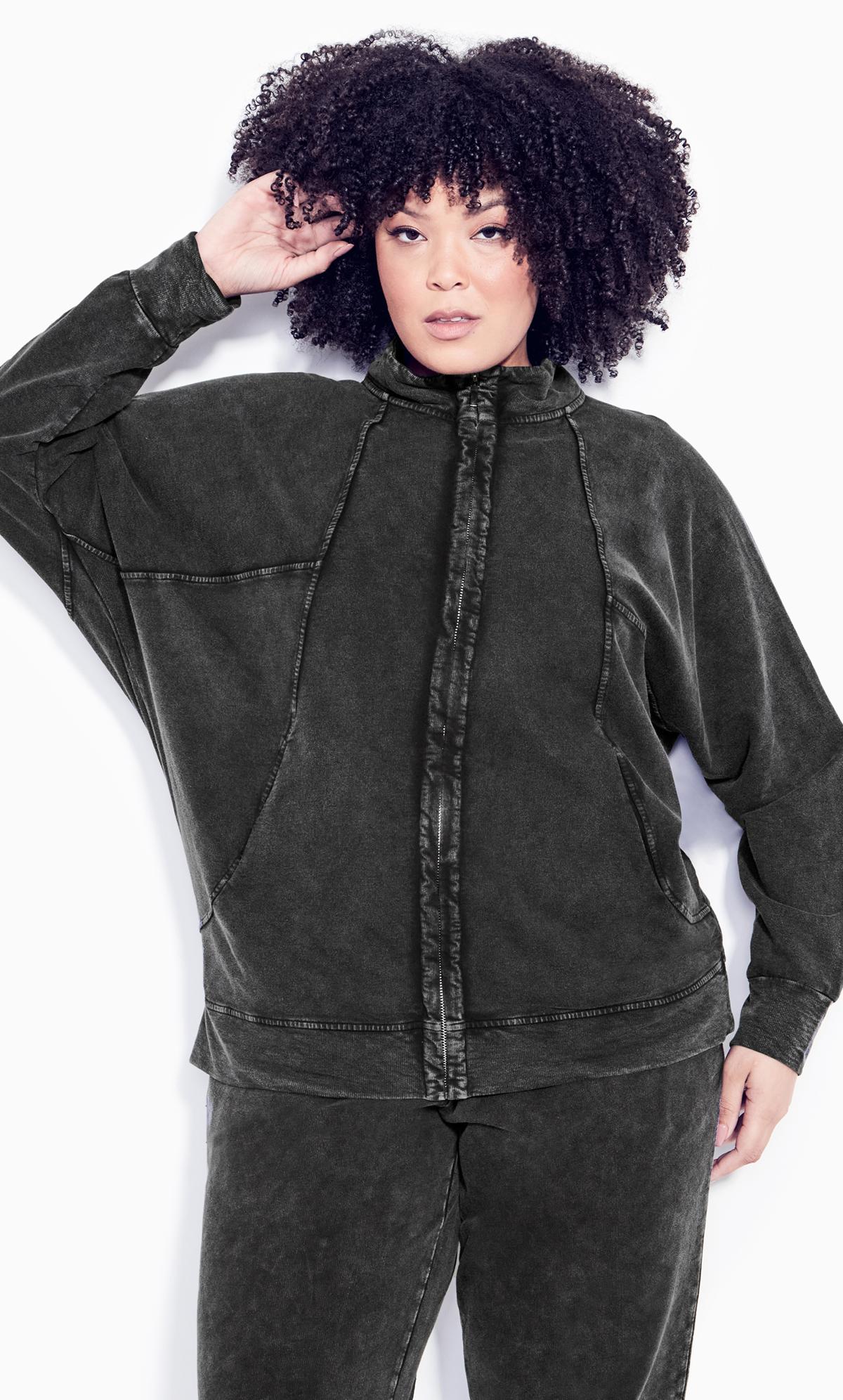Elevate your casual wear with the Avenue Black Acid Wash Zip Up Sweatshirt. The edgy black acid wash adds a unique touch to this classic piece, giving it a modern and fashionable vibe. The convenient zip-up design combines comfort and style, making it perfect for layering or wearing on its own. Whether it's a laid-back outing or a cozy day indoors, this sweatshirt offers a versatile and trendy addition to your wardrobe.