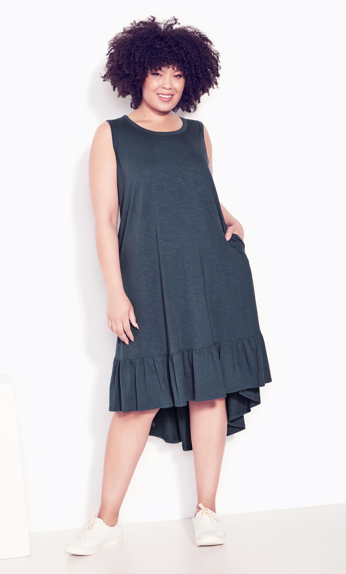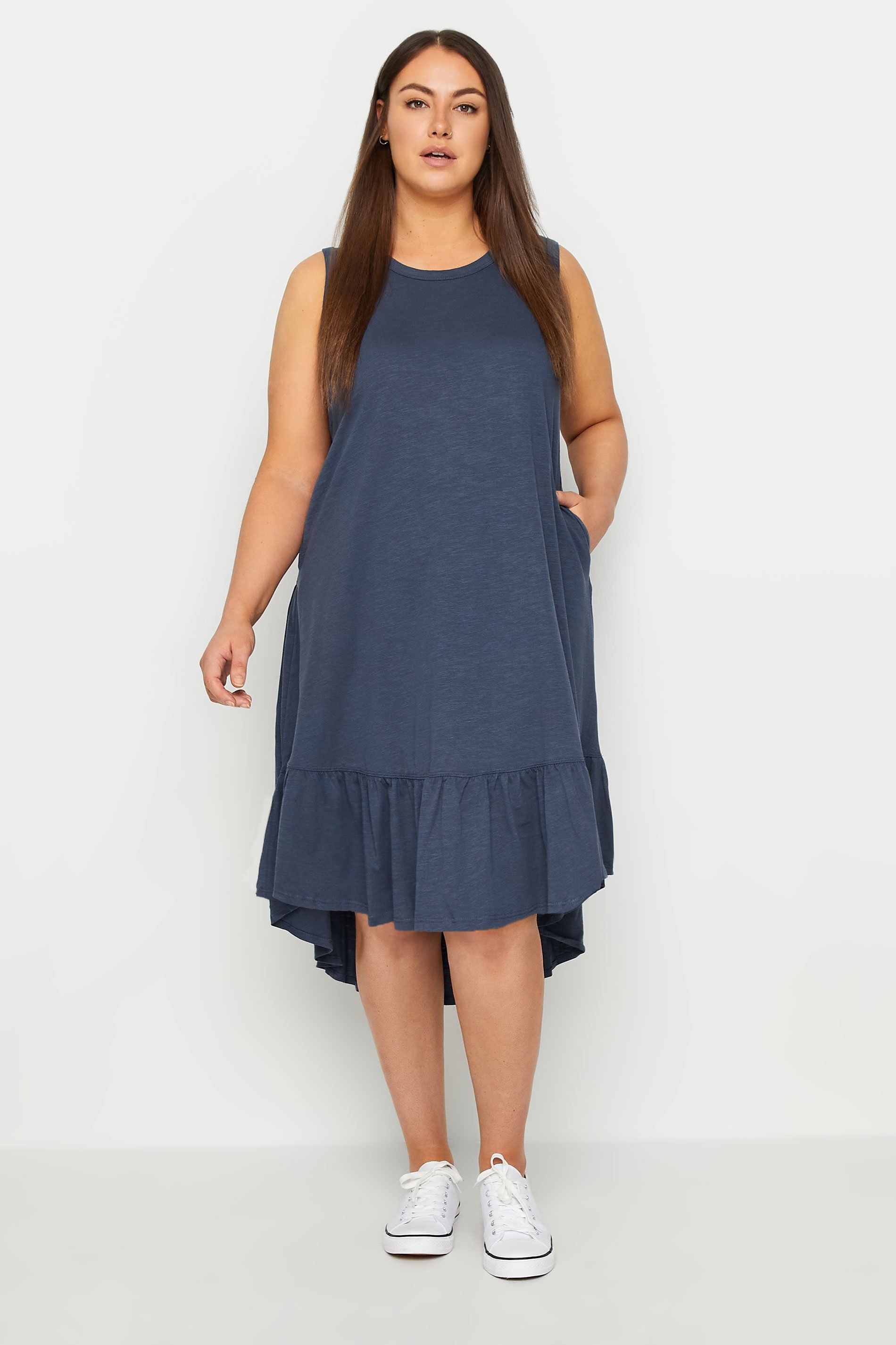 Evans Navy Blue Dipped Frill Hem Midi Dress