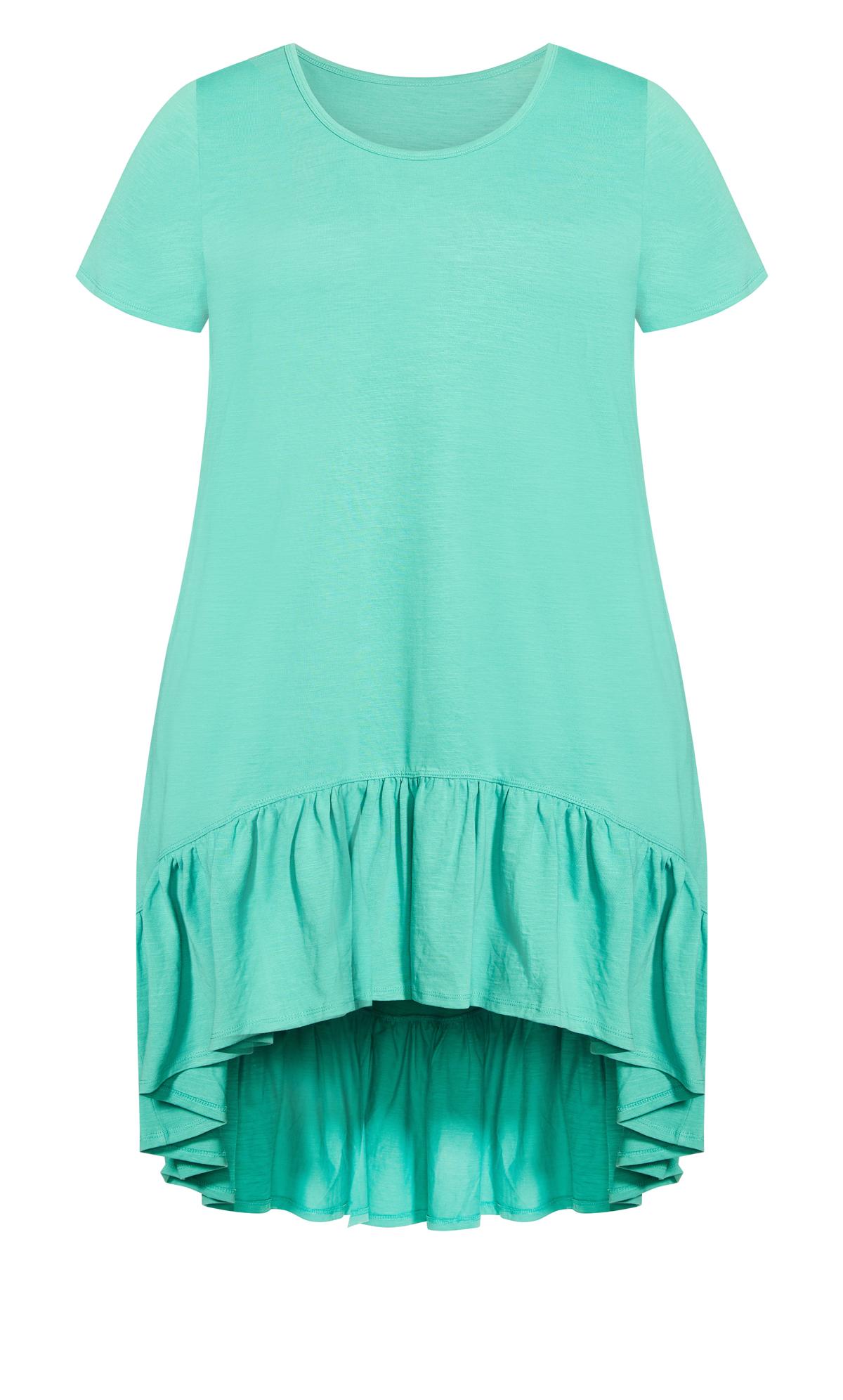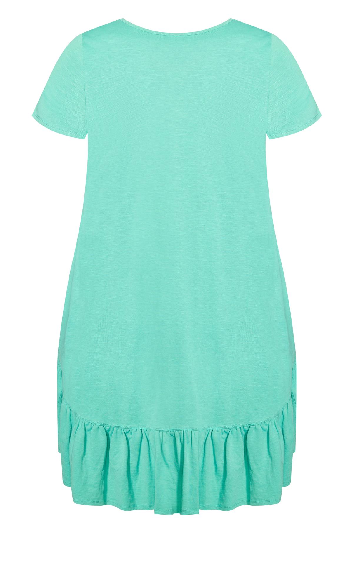 Add a breath of fresh air to your wardrobe with the Ella Ruffle Plain Dress. Boasting a vibrant jade hue with a scoop neckline and ruffle hemline, this midi dress is a sure-fire wardrobe winner.