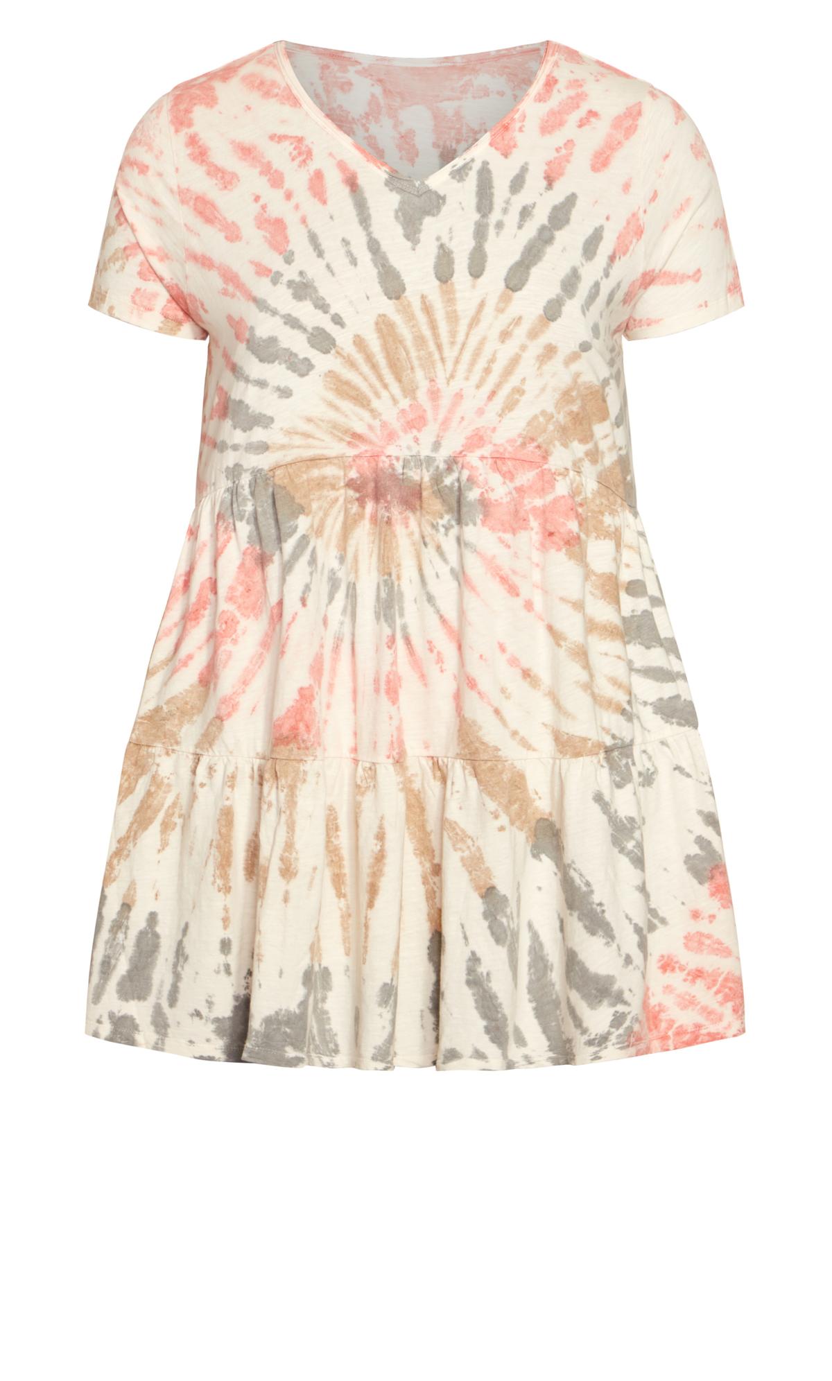 Charm eyes in the blushing pink shade of the Tiered Tie Dye Dress. This dress is sure to be your new casual favourite in a retro-inspired design with a tiered silhouette and midi length.